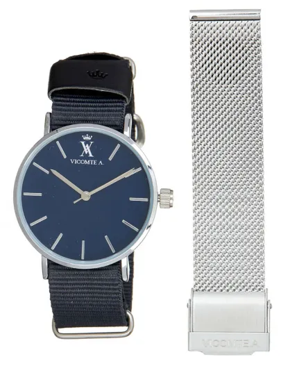 Montre Mixte en Nylon grise + bracelet en Acier argenté