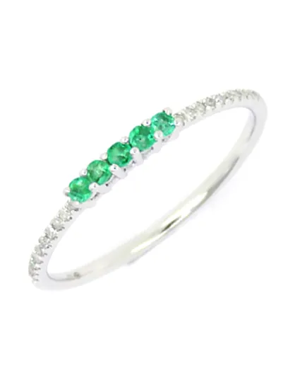 Bague Alliance Lisière Diamants 0.06 ct Emeraudes 0.10 ct or blanc