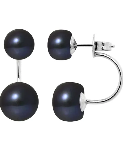 Boucles d'oreilles Azalée Argent Perles d'Eau Douce noir Tahiti