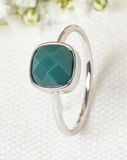 Bague Ella Agate en laiton argenté