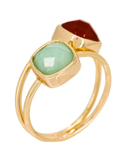 Bague Jovanni Amazonite & Cornaline en laiton doré