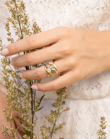 Bague Debora Quartz, Labradorite et Jade en laiton doré