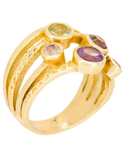 Bague Kelly Pierre de lune & Améthyste en laiton doré