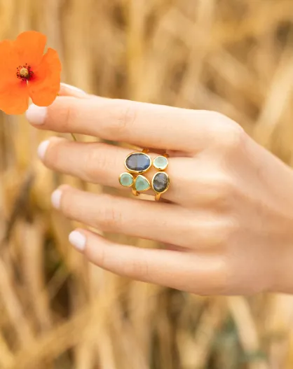 Bague Tatiana Labradorite & Aqua Calci en laiton doré