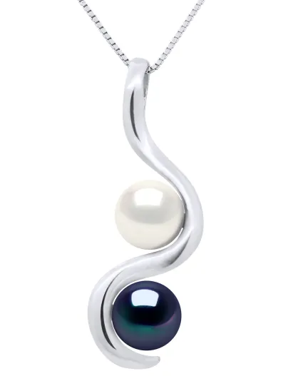 Pendentif Toi & Moi Or Blanc & Perles d'Eau Douce noir/blanc