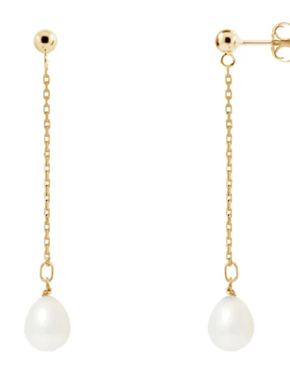 Boucles d'oreilles Or Jaune Perles d'Eau Douce blanches