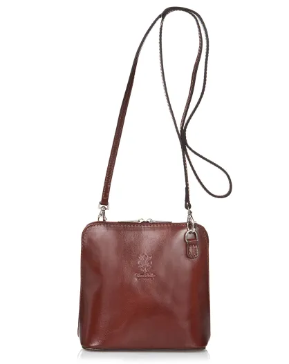 Sac bandoulière en Cuir Lydie marron - 14x19x6 cm