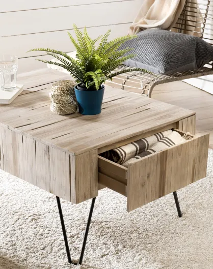 Table basse 2 tiroirs Clara teck - 90x60x45 cm