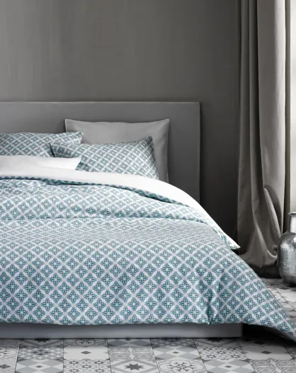 Parure housse de couette 100% Satin de Coton Azulejos bleu/blanc