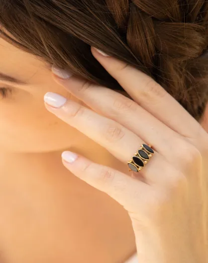 Bague Reina Onyx en laiton doré