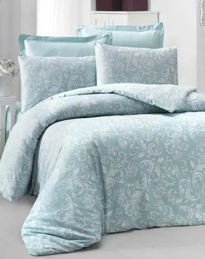 Parure Housse de couette & 2 Taies Verano menthe/blanc - 240x220 cm