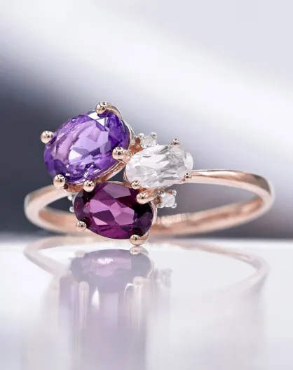 Bague Barbara Diamants 0.02 ct, Améthyste 0.70 ct, Rhodolite 0.66 ct & Quartz Rose 0.33 ct or rose