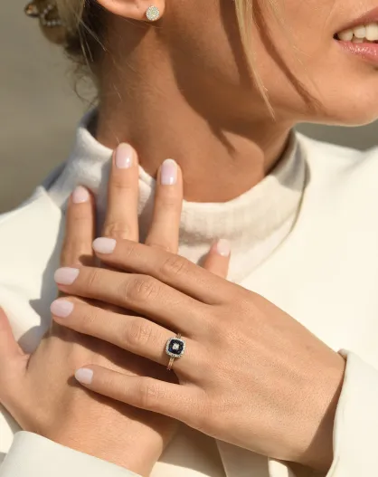 Bague Volga Diamants 0.03 ct & Saphirs 0.58 ct or blanc