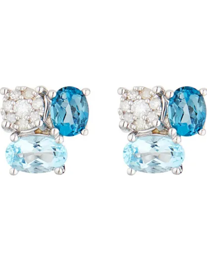 Boucles d'Oreilles Oural Diamants 0.09 ct & Topazes Bleues 0.70 ct or blanc