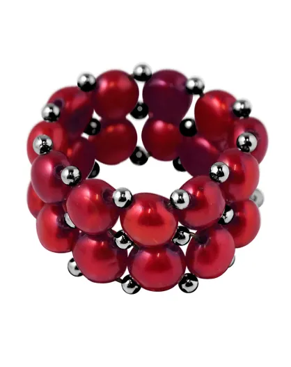 Bague 2 Rangs Perles d'Eau Douce cherry