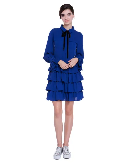 Robe volantée lavallière saphir
