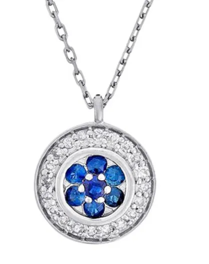 Collier Bouclier Diamants 0.07 ct & Saphirs 0.18 ct or blanc
