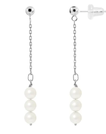 Boucles d'oreilles Pendantes Argent Perles d'Eau Douce blanc naturel