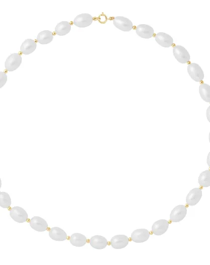 Collier Rang Or Jaune Perles d'Eau Douce blanc naturel