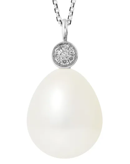 Collier Prestige Or Blanc Diamants Perle de Culture d'Eau Douce blanc naturel