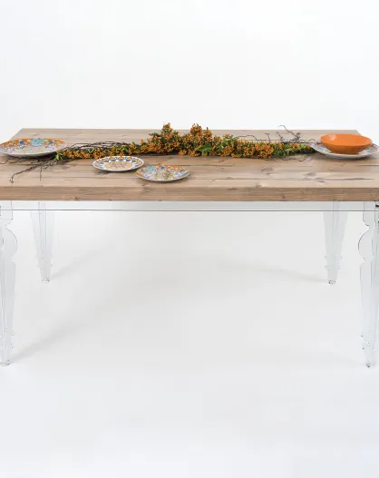 Table de séjour Maugenio transparent/bois - 155x90x75 cm