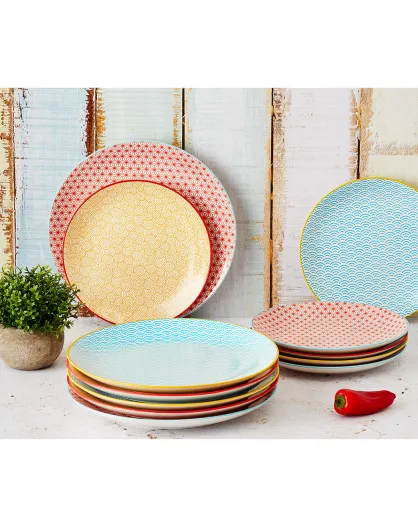 6 Assiettes plates Pattern Color bleu clair/rouge/jaune - D.26 cm