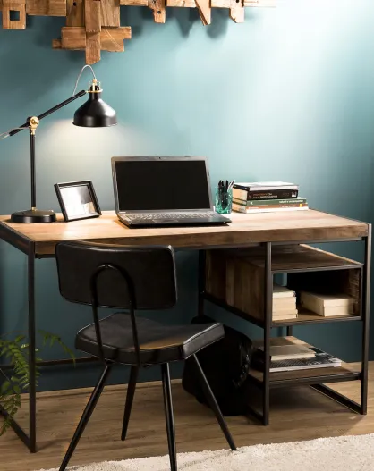 Bureau 1 niche & 1 tablette Sixtine teck - 140x70x78.5 cm