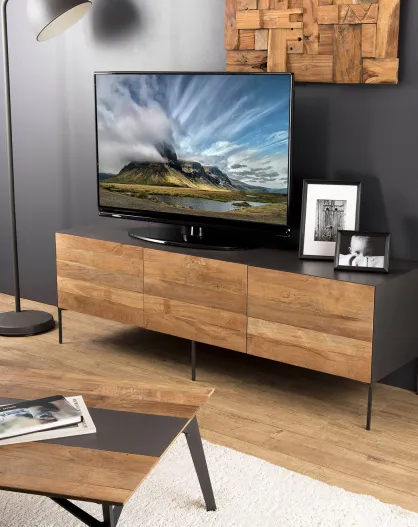 Meuble TV 2 portes & 1 tiroir Maxence teck - 166x45x55 cm