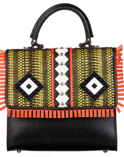 Sac en Cuir & Raffia noir - 20.5x19x8 cm