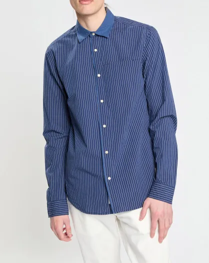 Chemise Regular Fit fines rayures bleu foncé