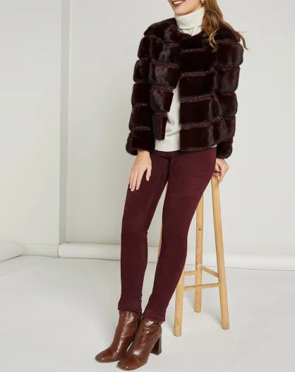 Legging stretch en Velours de Cuir d'Agneau Nusto aubergine