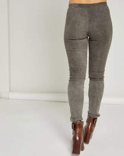 Legging stretch en Velours de Cuir d'Agneau Nusto gris mélangé