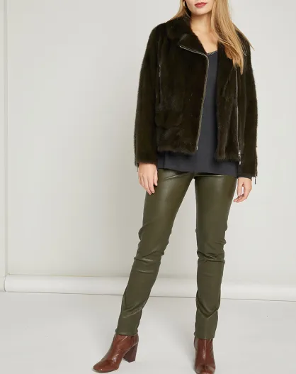 Legging stretch en Cuir d'Agneau Perle kaki