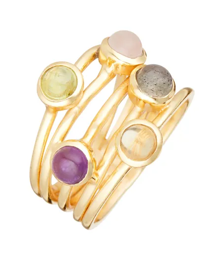 Bague Chloé Labradorite Péridot Citrine Quartz rose & Améthyste en laiton doré