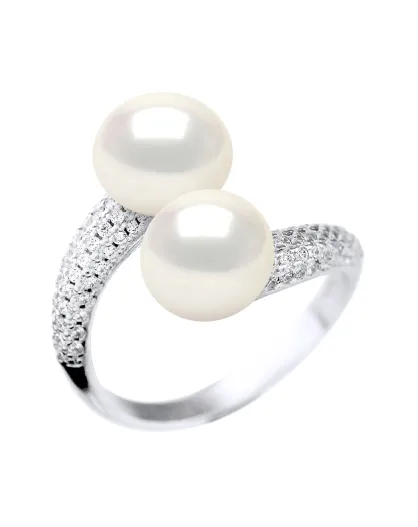 Bague Jonc Argent Pavage Oxydes & Perles d'Eau Douce blanc naturel
