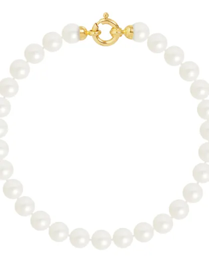 Bracelet Or Jaune Rang Perles d'Eau Douce blanc nacre
