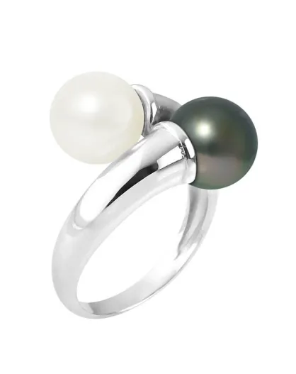 Bague Toi & Moi Prestige Argent Perles d'Eau Douce de Tahiti blanc naturel