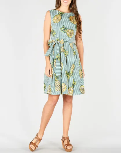 Robe Aix rayée & motifs ananas verte