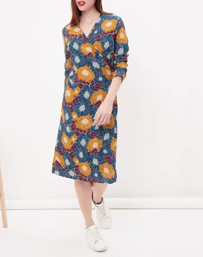 Robe portefeuille Razzia imprimé floral bleu/rouge/ocre