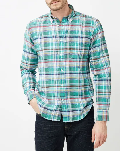 Chemise regular en Lin mélangé Pal à Carreaux verte