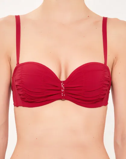 Haut de maillot de bain Bandeau à coques drapé rouge