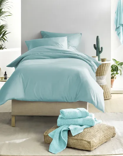 Parure housse de couette 100% Satin de Coton Olivia turquoise