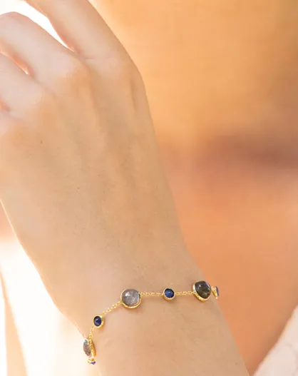 Bracelet Neela Labradorite & Jade en laiton doré