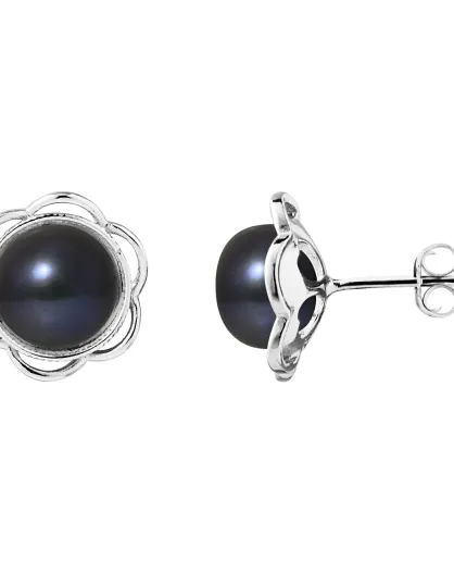 Boucles d'oreilles Argent Perles d'Eau Douce noires