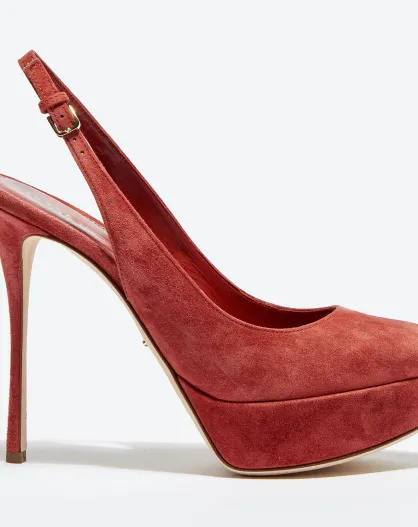 Slingbacks en Velours de Cuir Vit open-toe goyave Talon 12 cm