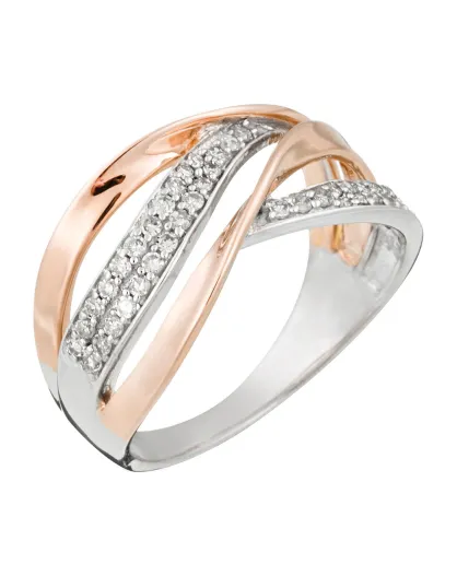 Bague Entrelacs arc-en-ciel Diamants 0.23 ct or bicolore