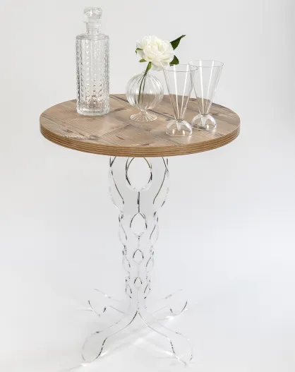 Table Arabesco bois/transparent - D.50xH.44 cm