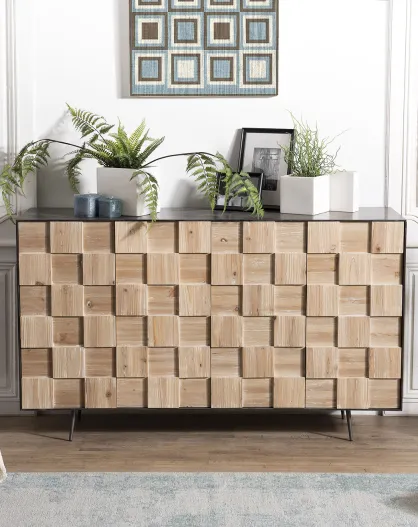 Buffet 4 portes Carla sapin/métal - 146x41x87 cm
