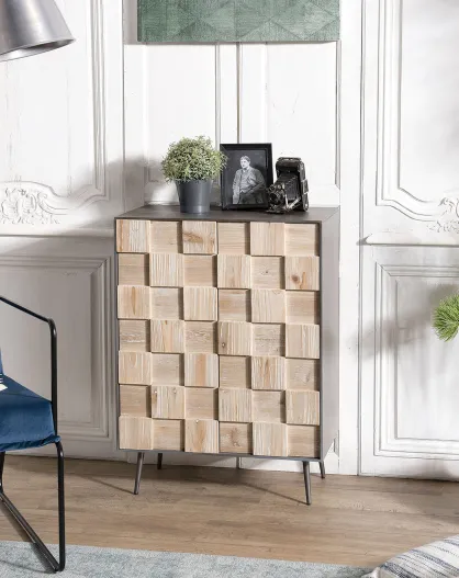 Buffet 2 portes Carla sapin/métal - 58.5x35x82 cm