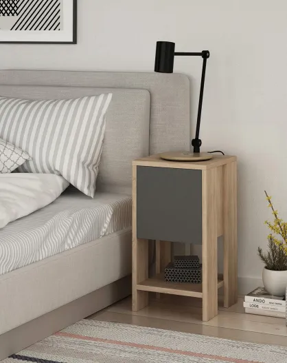Table de chevet Ema chêne/anthracite - 30x30x55 cm
